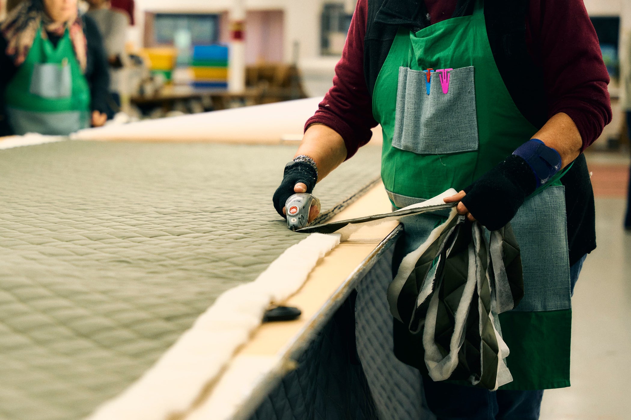The current Lavenham factory stands just six miles from their original location and has been designed with exact purpose. With 102 employees and a 16-point production process you might be expecting an organised chaos. But instead, we were met with an organised perfection. Each room had space to breathe, whether that be the fabric, quilting, cutting, or assembling rooms. And every artisan was mesmerising to watch at their unique specialty. It became clear why Lavenham is revered for their quality.