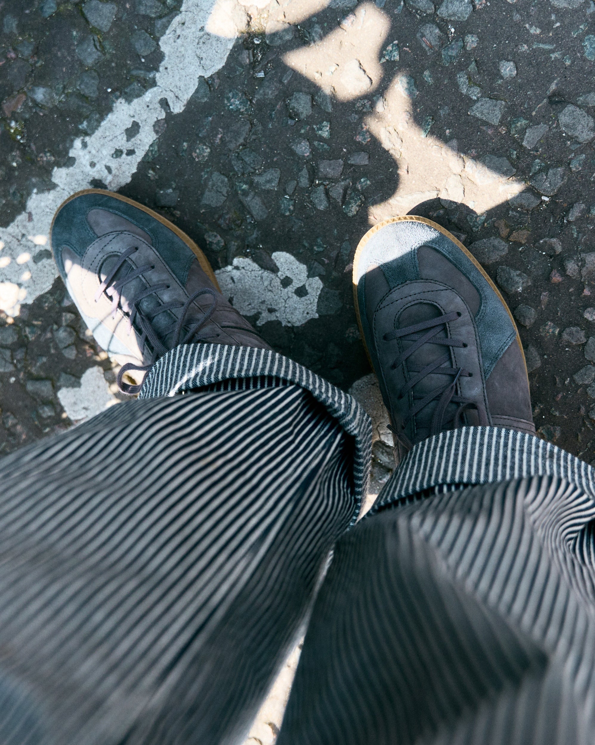 Whatever the true origin of the German Army Trainer, we do know that hundreds of thousands of pairs were made throughout the 1980s, supplying the Bundeswehr’s force of 500,000 troops with a sports shoe geared towards flexibility and comfort, making them ideal for training. After the Berlin Wall fell in 1989 and reunification talks began, a restructuring of the German Army sent a huge quantity of GAT’s to surplus stores, which were then picked up cheaply by kids who instantly recognised it as a cheap but incredibly stylish shoe. Within 10 years of GAT’s hitting consumer shelves in Germany, they had developed a cult following which was only intensified when Maison Margiela used refurbished Bundeswehr GAT’s in their 1999 Spring/Summer show. Since then, the shoe has become one of the most recognisable and widely produced designs on the market, with the fact that nobody ‘owns’ the design making it fertile ground for reinterpretation, replica, and reproduction.