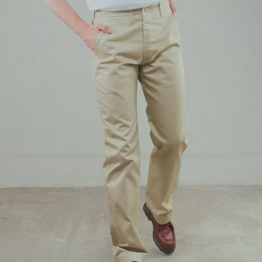 The iconic trouser worn by Steve McQueen in the 1963 film, The Great Escape has landed here at Son of a Stag, and are a brilliant interpretation of the WWII military chino. Toys McCoy has painstakingly reproduced the trousers with permission from the McQueen estate, and have used the finest materials and construction methods they could get their hands on. Cut from a 100% cotton chino, these trousers boast a comfortable mid-rise with a traditional trouser top block. Two side-entry pockets are included on the front, along with a subtle watch pocket, and two welted pockets on the back.