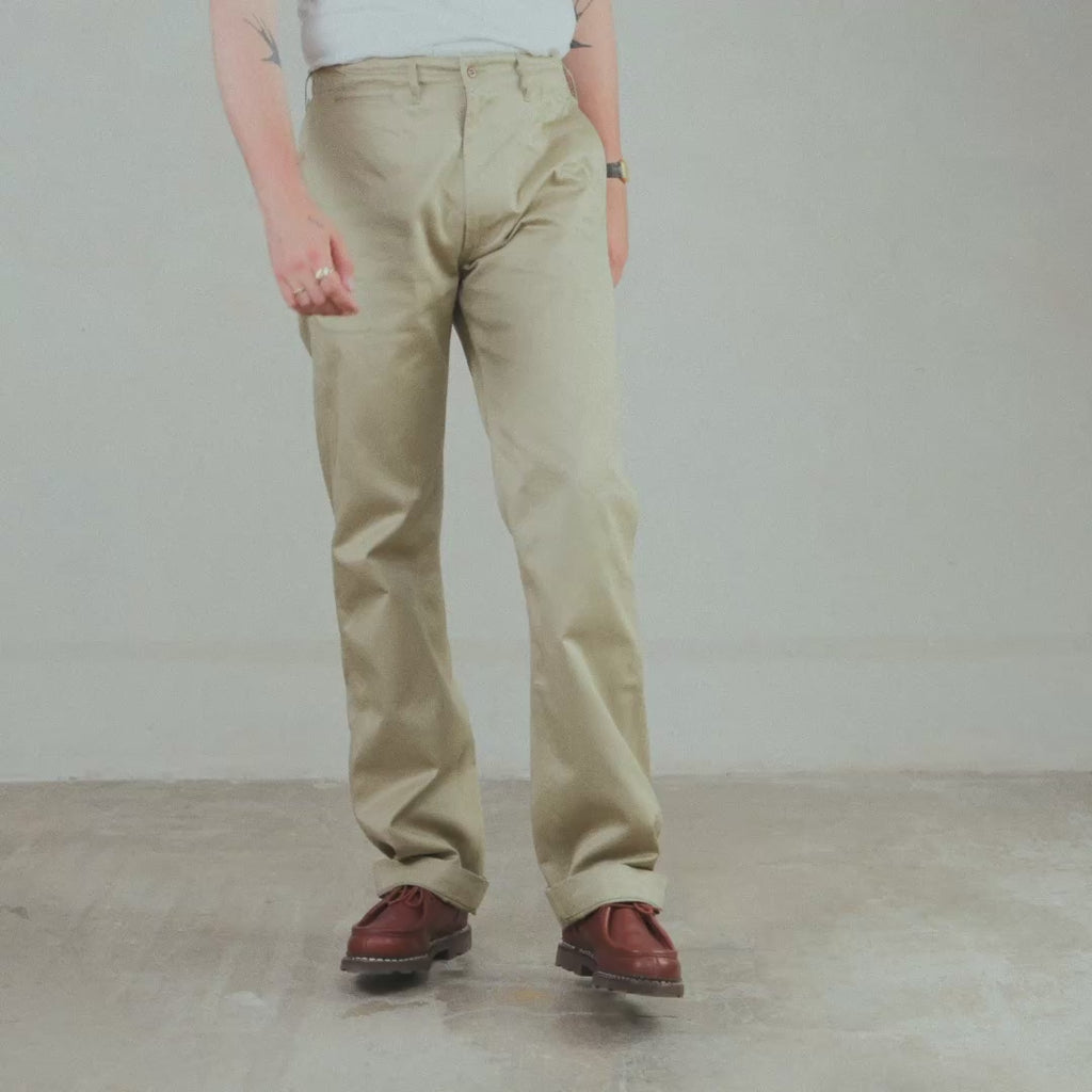 These military chinos from Buzz Rickson's are cut in a slim straight fit, and follow the brilliant tradition of superbly manufactured garments which we have come to expect from this company. The fabric is a durable 100% cotton chino drill, which is hard wearing and softens beautifully over time. Known for their attention to detail, the good people at Buzz Rickson's have fitted this iconic chino model with a vintage reproduction 'Talon' zipper for the fly opening, and narrow, double welted back pockets, designed to withstand the strain of military (and civilian!) life.